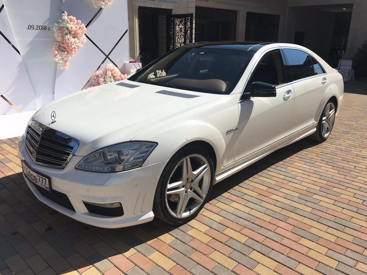 Прокат автомобиля представительского класса Mercedes S 500 белого цвета с водителем в Новоазовске